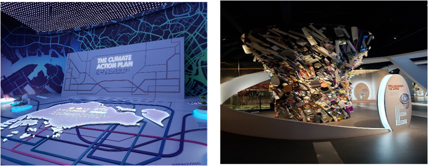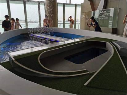 2019年11月3日,同学们参观了永续新加坡展览馆(Sustainable Singapore Gallery),通过馆内多媒体展示和展览,了解新加坡如何推动绿色环保理念,亲身体验新加坡这个小岛所面对的环境和水务问题。永续馆的旁边便是滨海堤坝。滨海堤坝横跨 350 米宽的滨海水道口 (Marina Channel) ,拦截新加坡河形成新加坡第 15 个蓄水池,供水量占总需求量的 10%。滨海堤坝的另一项重要功能是缓解新加坡低洼地带的淹水情况。每降豪雨,滨海堤坝的9道铁闸会开闸泄洪,将蓄水池内高涨的积水排入海中。在降雨量过大水位线超过设定值时时,则7个巨型排水泵将自动启动,以每个排水泵每分钟排空一个奥林匹克泳池水量的速度将多余的雨水排放入海。滨海堤坝还展示了新加坡致力于打造绿色国家的决心。以太阳能公园 (Solar Park) 为例,这是全新加坡规模最大的太阳能板集中区,400 多块太阳能板日间发电量可用于滨海堤坝全天的室内照明。