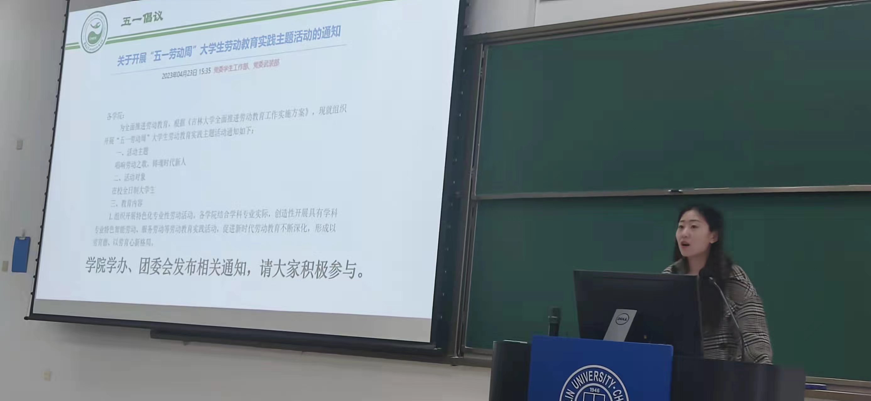 最后,李老师提醒同学们在五一期间应当注意安全问题,建议同学们关注出行安全、网络安全、寝室安全和疫情防控安全。同时提出三点要求:一是严禁以年级、班级名义组织学生集体外出游玩;二是谨防网络诈骗、不造谣信谣传谣;三是保持宿舍卫生整洁,禁止在宿舍使用明火、违规使用大功率电器。“五一劳动周”即将到来,李老师同时提醒同学们关注校内通知,积极主动参加劳动教育主题实践活动。