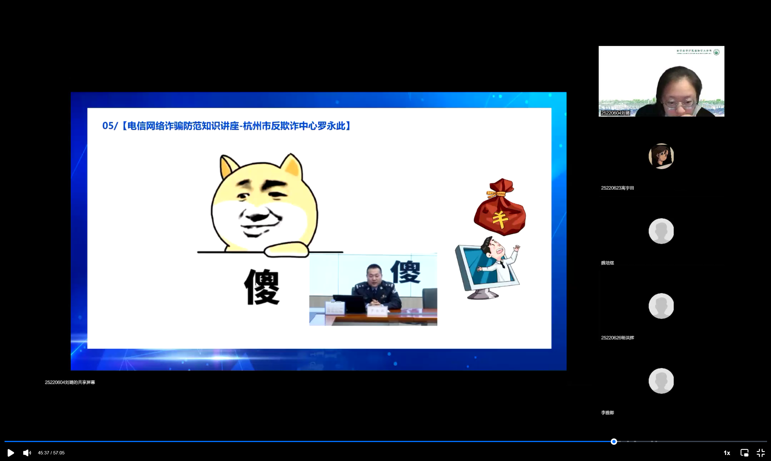 252206班同学在团支书刘璐的带领下,线上开展了以“防范诈骗擦亮眼 拒绝诱惑心不贪”为主题的团日活动。