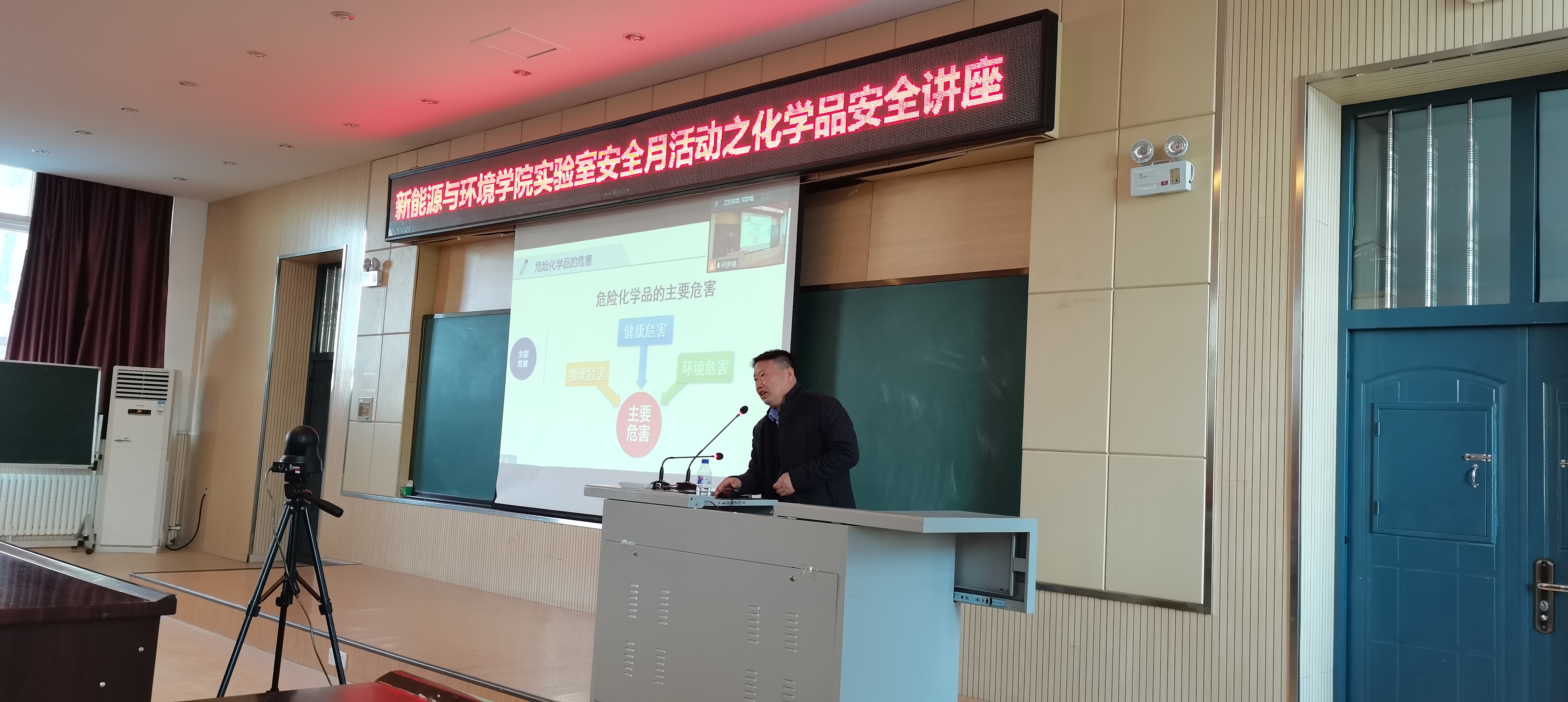 化学学院国家级实验教学示范中心副主任魏世刚结合具体工作实际就实验室危险化学品的采购运输、安全使用、安全管理、应急处理、废液的处理及安全防护等方面进行了培训,重点针对新能源环境学院常用危化品的特性、存放与使用做了详细的讲解。同时也介绍了实验室实验安全风险评估的重要性,通过实验室安全事故实例,来提高广泛师生对危化品的安全意识。