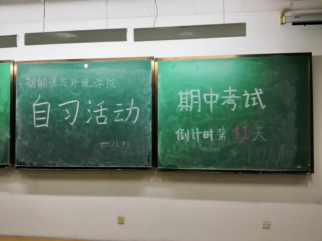在距考试两周的最后关头,自习室的黑板上也出现了考试的倒计时,随着考试逐渐临近,偌大的自习室渐渐被热情高涨的新能源学子占满,大家都在为期中考试做最后的准备。