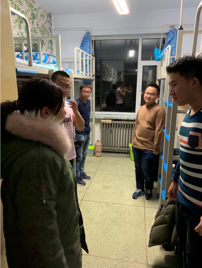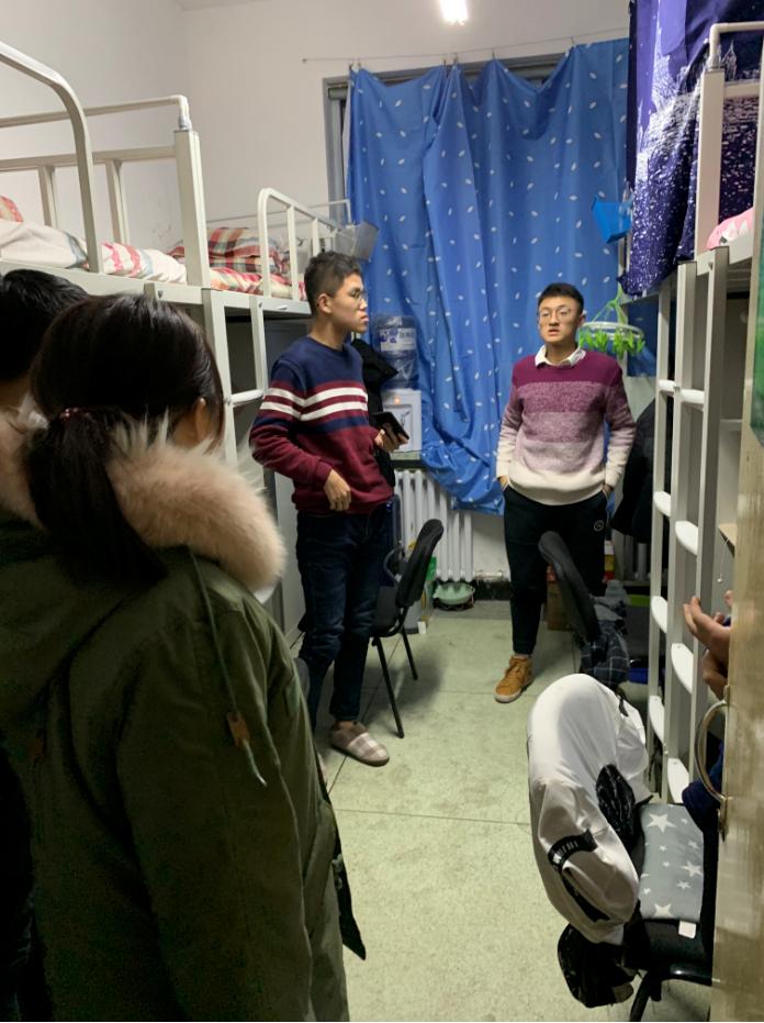 2018年12月24日晚,海角社区 党委副书记吴哲,辅导员孟婧莹老师及学院学生会干事,来到本学院学生所在宿舍南苑一公寓、南苑二公寓和文苑四公寓寝室楼开展了寝室防火安全检查工作。本次查寝的主要目的是排查违规电器和宠物,检查各寝室内卫生,了解同学们近期的生活状况。