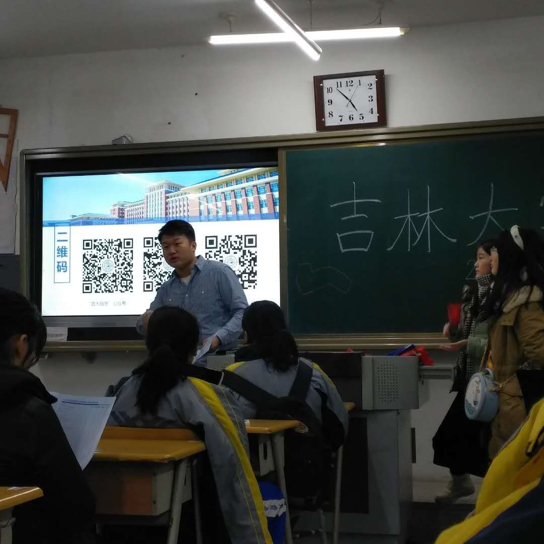 1月19 日,海角社区 的任思怡团队回到了自己的母校吉林毓文中学参加了统一举办的宣讲活动。此次宣讲活动其学校为每一个团队提供了一间教室,让需要宣讲的团队在教室等待学弟学妹课后来听感兴趣的高校代表团队的宣讲。海角社区 作为本省最好的综合性重点大学,其宣讲团所在的教室座无虚席,甚至很多学弟学妹站在教室后面等待着宣讲的开始。