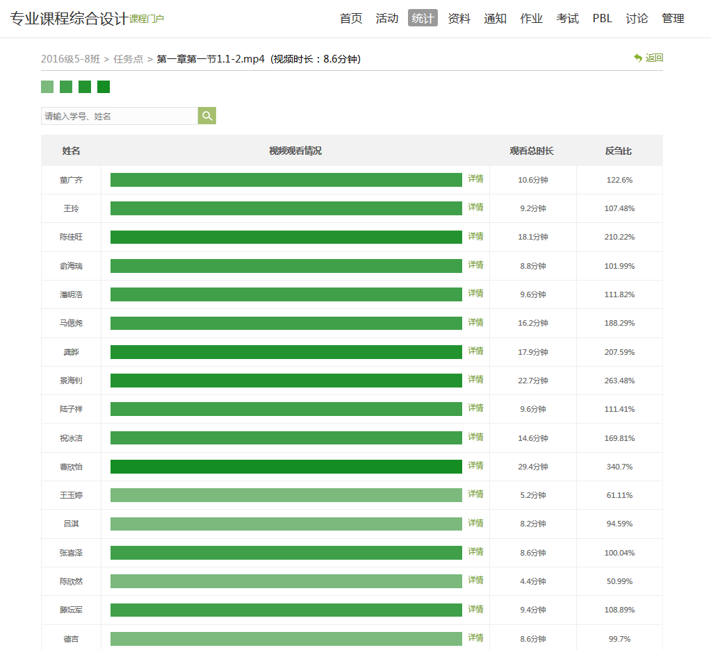 5 利用“在线学堂”平台的统计功能提醒学生不要偷懒
