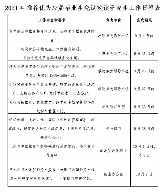 下图为校发推免工作日程表,仅供参考,各环节时间截点以学院要求为准。